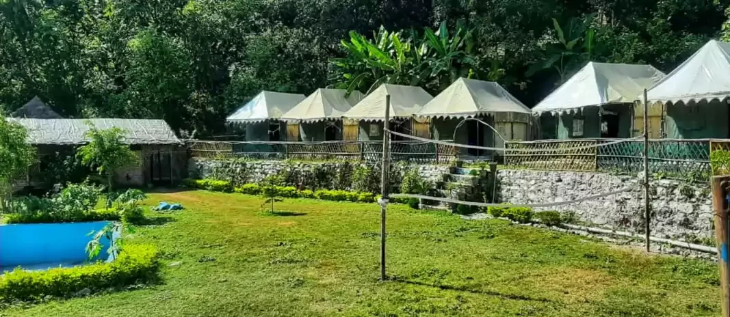 Enjoy peace and adventure at Mohanchatti Riverside Camp by the Heul River. Stay in comfortable Swiss tents and cottages with all modern amenities.